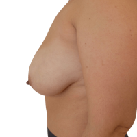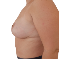SOLUTION: Pexie mammaire (rehaussement du sein) ainsi que l’implantation d’une prothèse anatomique afin d’améliorer la projection du sein, d’habitude la position sous-musculaire est préféré. Le résultat est souvent excellent et très satisfaisant pour la patiente.